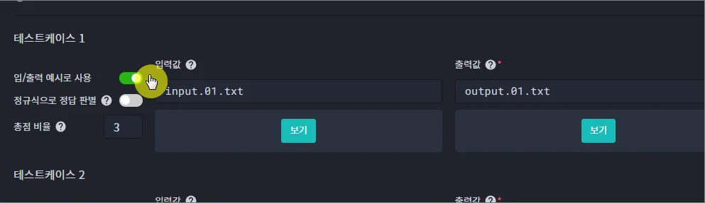 예 입·출력 예시로 사용된 테스트케이스 외 채점을 위한 테스트케이스가 없는 경우